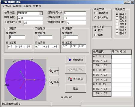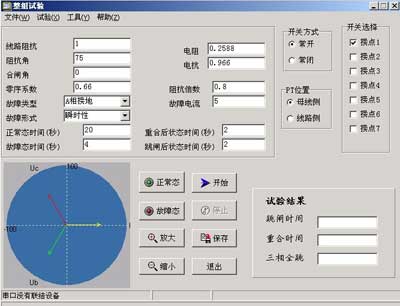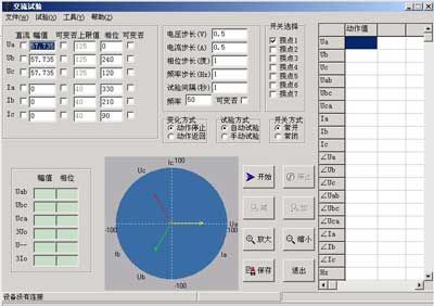 試驗時,計算機自動計算并顯示線電壓、負序電壓、零序電壓等數據,并顯示各相電流、電壓的矢量圖。矢量圖可用“放大鏡”進行放大和縮小。